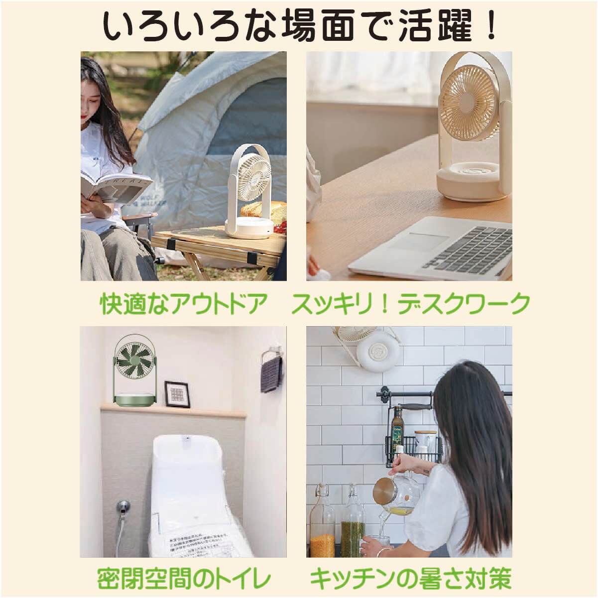 【利用シーン】 卓上、床、壁掛け、USB充電式だからアウトドアや屋外作業。