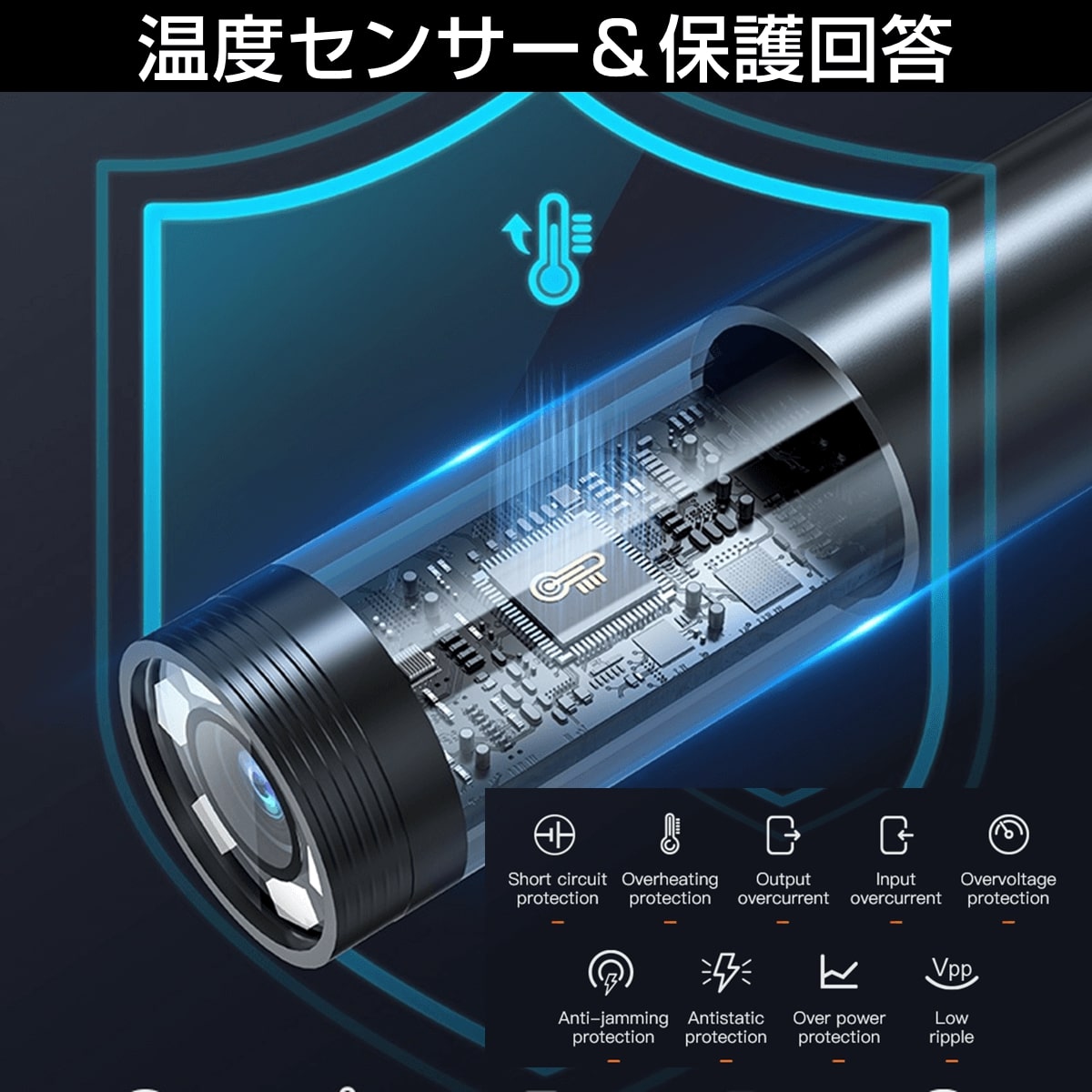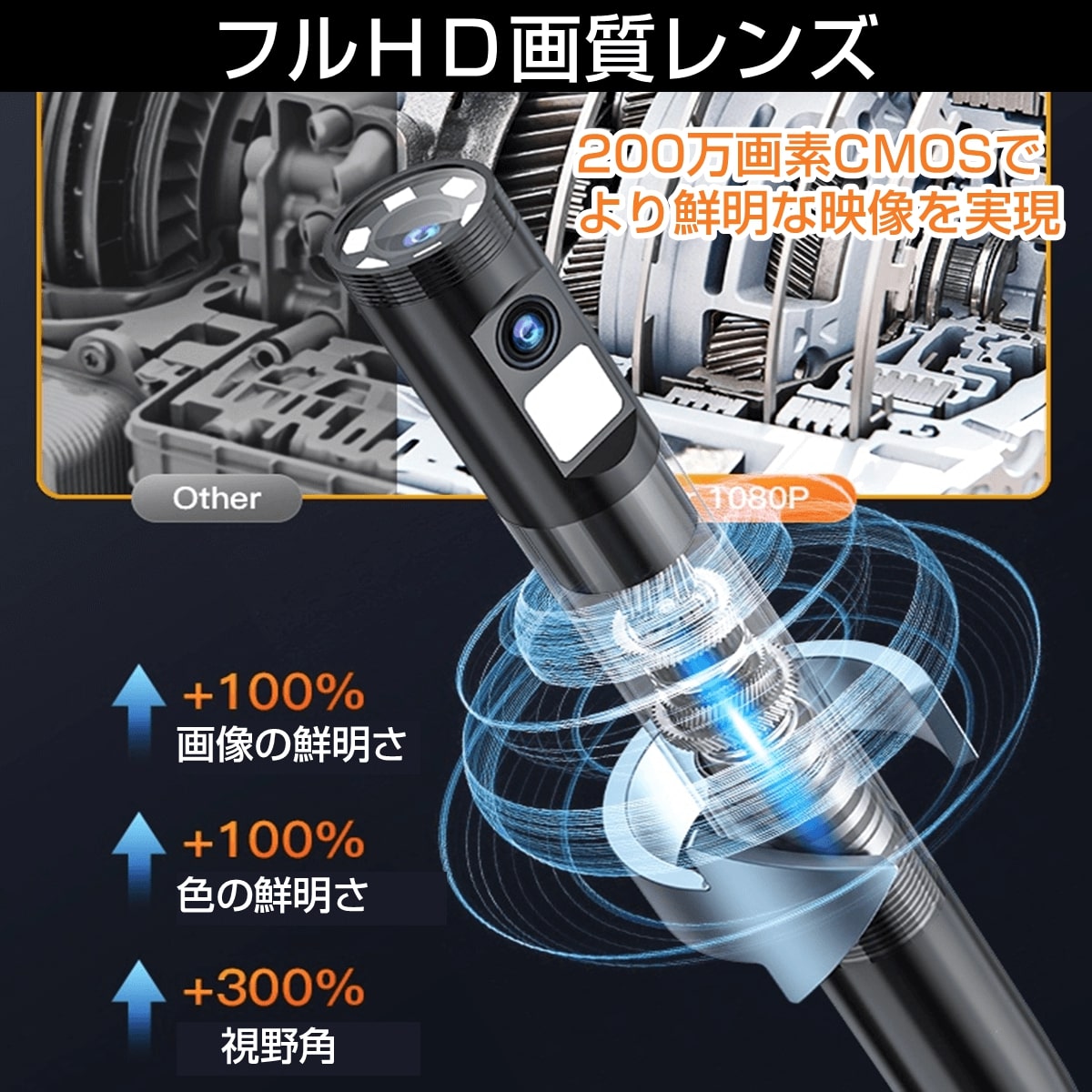 【LEDライト】:高輝度ライトを搭載し、光が届かない暗所も鮮明に撮影。