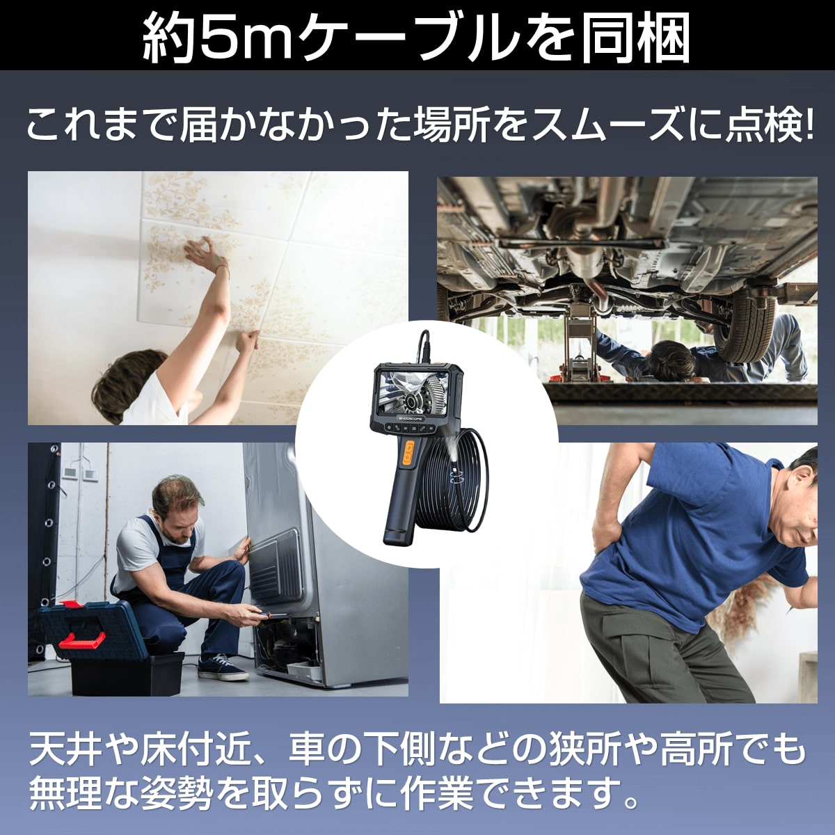 下回り・配線・狭所の確認に最適。中古車市場の拡大で需要増。