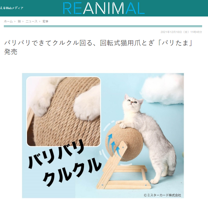 バリバリできてクルクル回る、回転式猫用爪とぎ「バリたま」